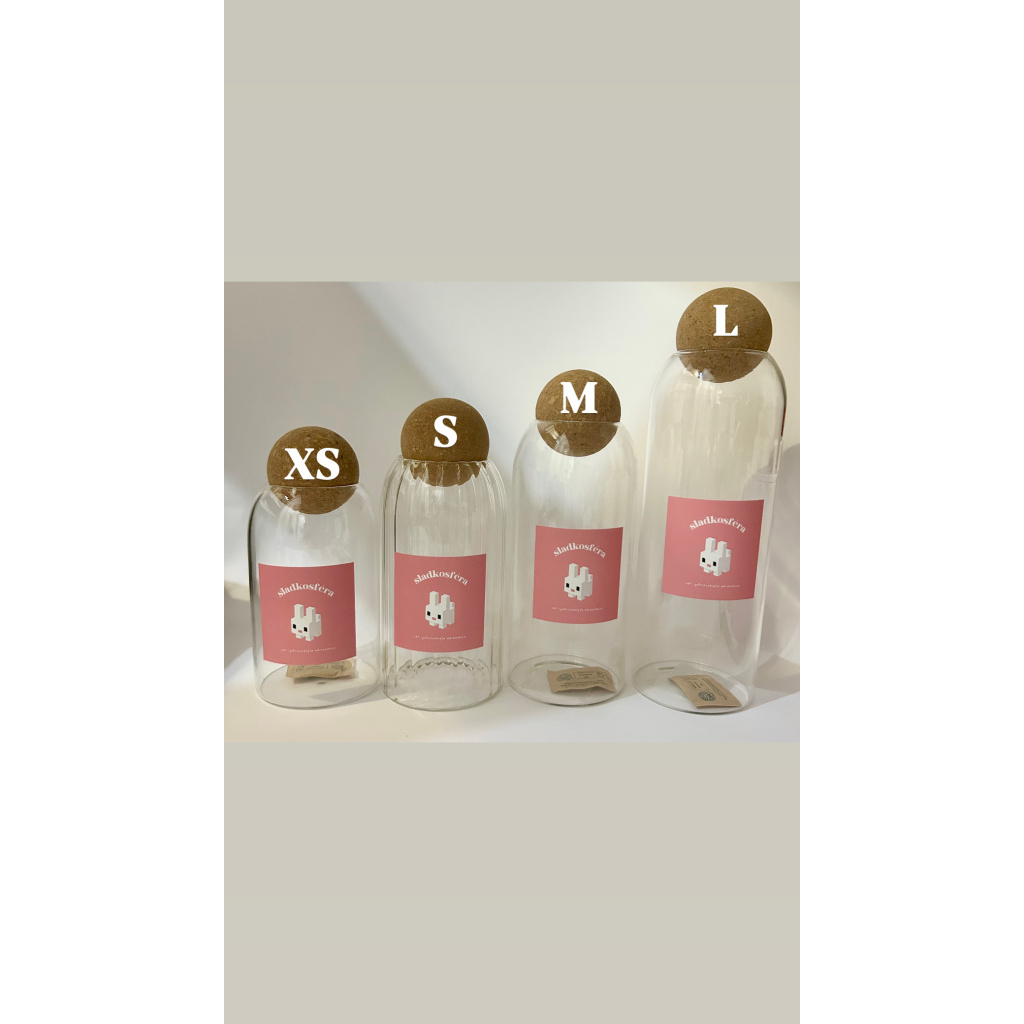 Skleněná dóza s korkovým uzávěrem naplněná výběrem lyofilizovaných marshmallow. Můžou se zde objevit Sedmikrásky, Golfové míčky, Srdíčka, Jahůdky, Melounky, Tornáda a další.